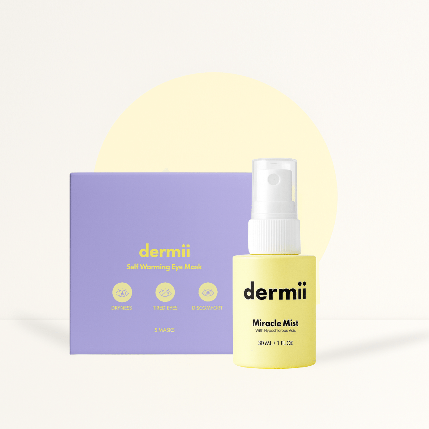 The Dermii Bundle is a routine, not a temporary fix. It works by combining daily cleansing (Mist) with deep calming therapy (Masks) to support the long-term comfort of your eyes. The goal is to help your eyes feel naturally refreshed and less dependent on quick-fix drops.